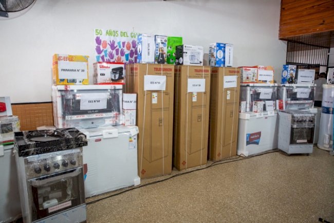 La inversión de esta entrega de equipamiento supera los 67 millones de pesos, utilizada para la adquisición de 11 cocinas, 10 balanzas, 5 termotanque, 15 procesadoras, 3 hornos pizzeros, 12 batidoras planetarias, 9 licuadoras, 15 mixers minipimers, 15 heladeras, 10 freezers horizontales, utensilios y vajillas.