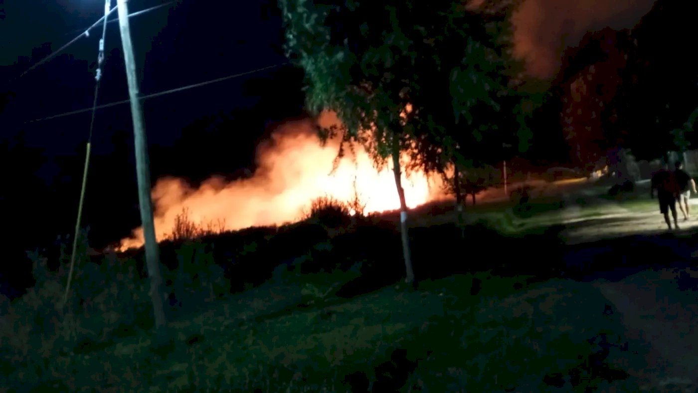 Al arribar al lugar, los efectivos se encontraron con un incendio descontrolado de pasturas bajas que se propagaba velozmente debido a las condiciones del terreno, lo que incrementaba el riesgo para las viviendas linderas.