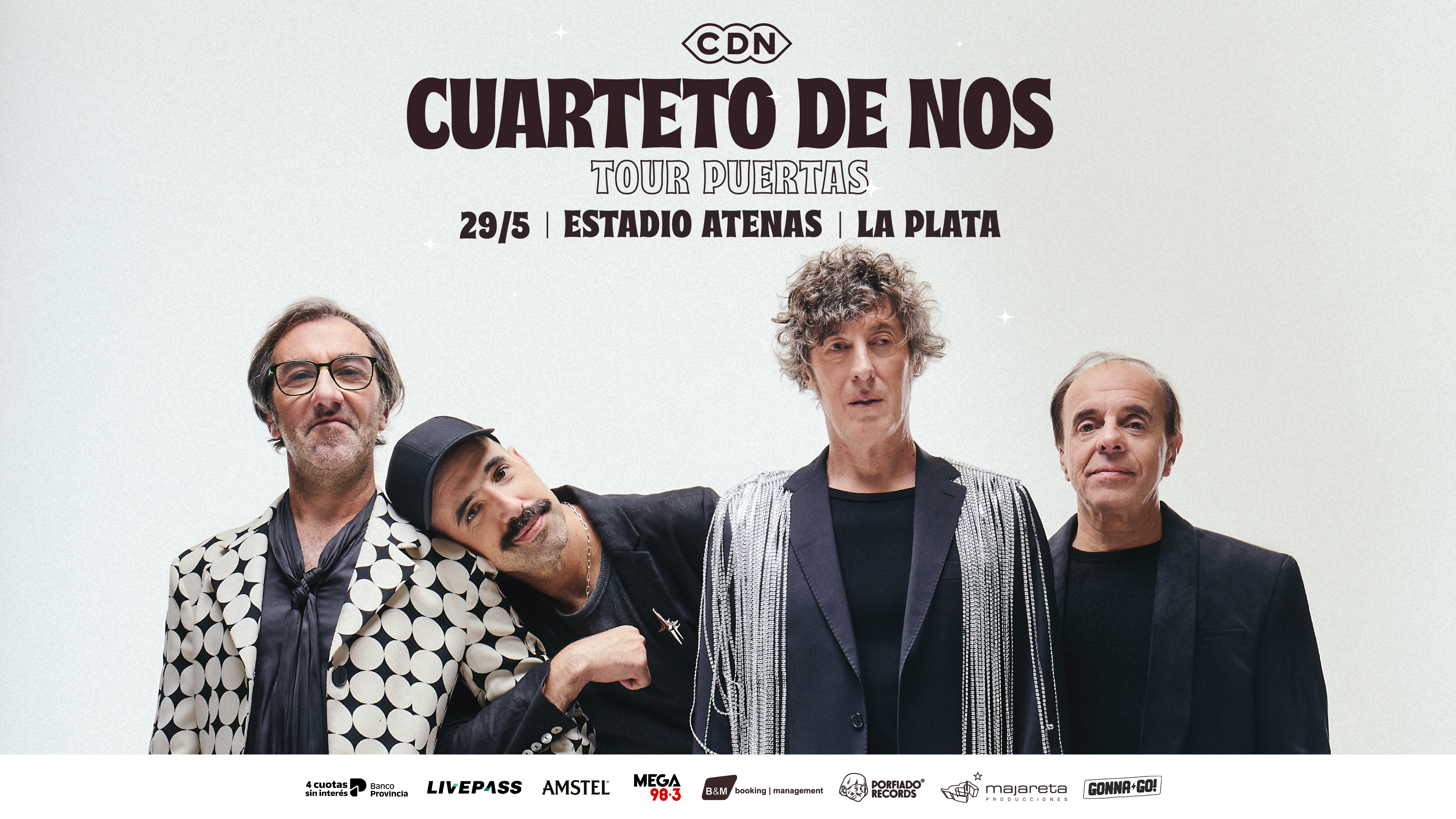 Luego de un 2025 intenso y cargado de hitos, Cuarteto de Nos continúa expandiendo su universo musical y anuncia su regreso a La Plata: el próximo 29 de mayo se presentará en el Estadio Atenas, en el marco de su exitoso TOUR PUERTAS.