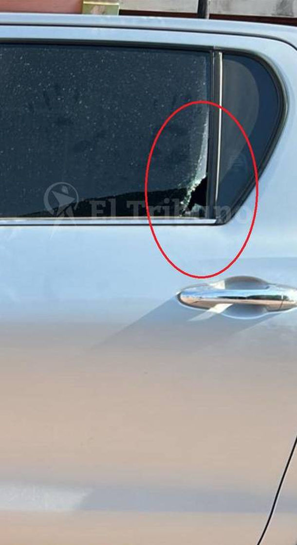 De acuerdo con los primeros reportes policiales, el impacto se produjo contra una de las ventanillas traseras del rodado, rompiendo completamente el cristal.