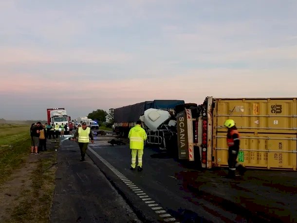 Según informaron fuentes viales, los dos vehículos de carga impactaron y uno de ellos terminó volcando sobre la calzada, mientras que el otro quedó detenido con fuertes daños en la parte frontal.