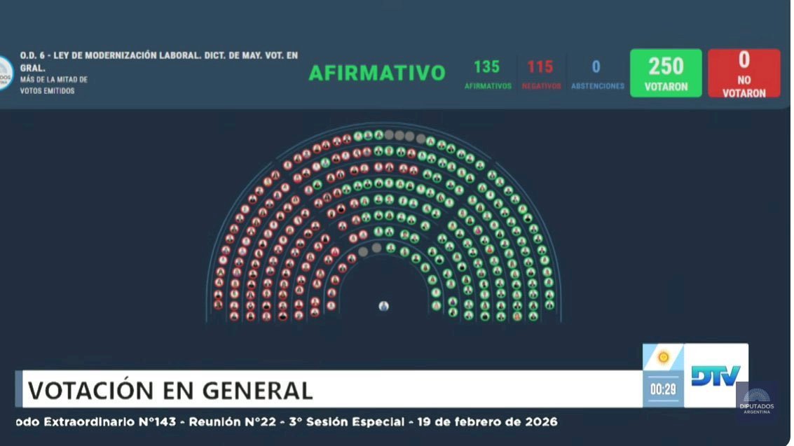 En una sesión atravesada por fuertes cruces y tensiones con la oposición, la Cámara de Diputados aprobó en general la reforma laboral impulsada por el presidente Javier Milei por 135 votos a favor, 115 en contra y 0 abstenciones. Con las modificaciones incorporadas en la Cámara Baja, la iniciativa deberá regresar al Senado para su sanción definitiva.