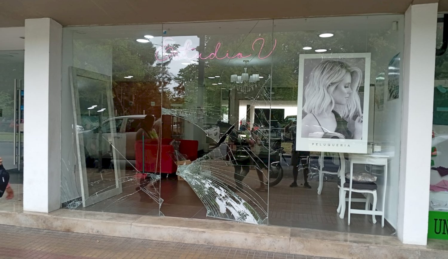 Durante la mañana del lunes, delincuentes rompieron el vidrio de una peluquería ubicada frente al Parque Saavedra, en 64 entre 12 y 13, para ingresar a robar y se llevaron una cabina de uñas.