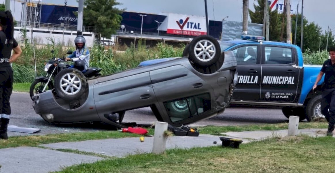 Un fuerte vuelco se registró este lunes al mediodía en la rotonda de 19 y 520, una de las más transitadas de La Plata.