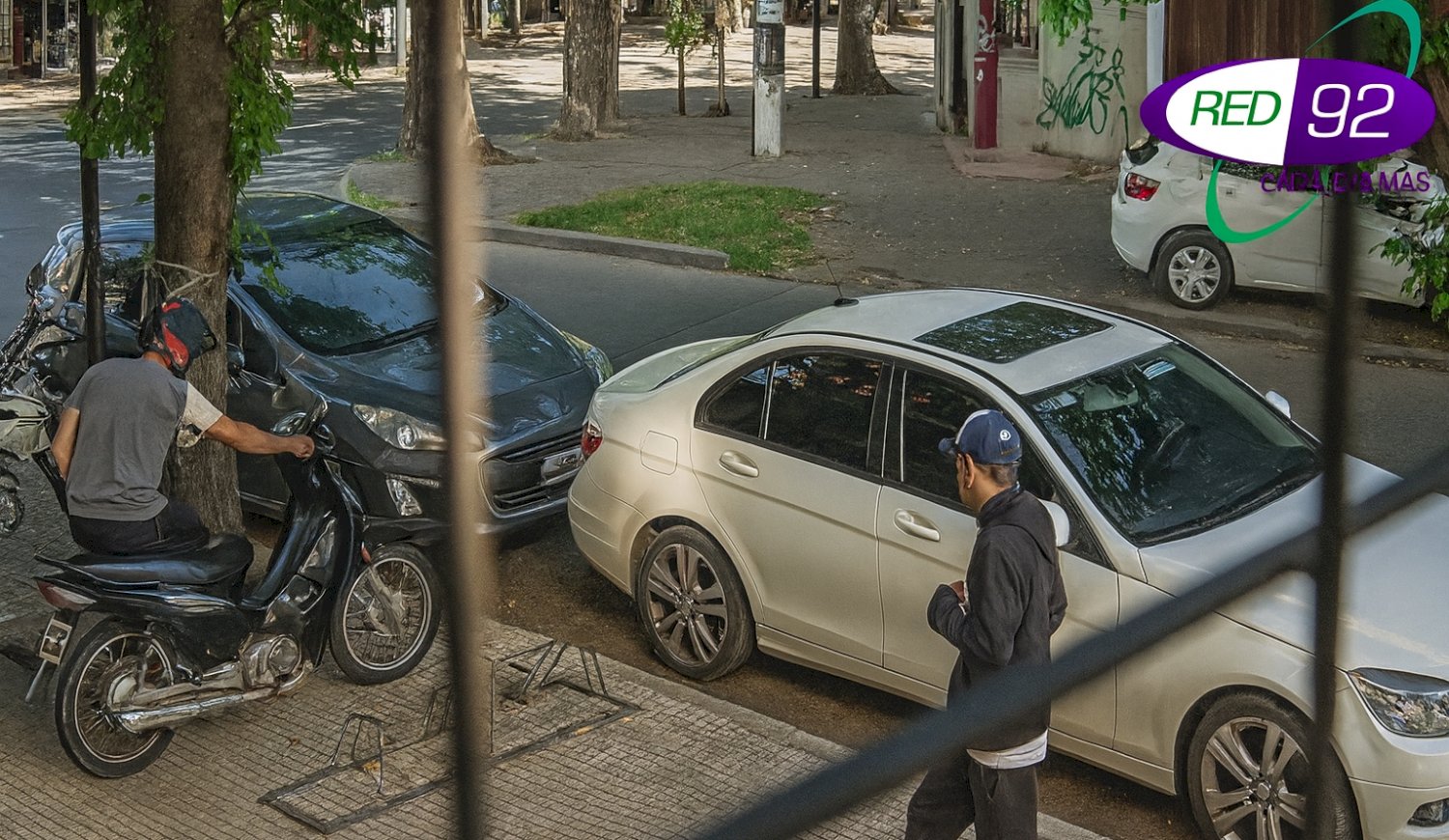 El delito quedó registrado desde distintos ángulos. Las cámaras de seguridad fijas de la cuadra captaron el momento en que los sujetos se llevan la motocicleta, mientras que un automovilista que circulaba por la zona logró filmarlos de frente, obteniendo imágenes nítidas de ambos implicados.